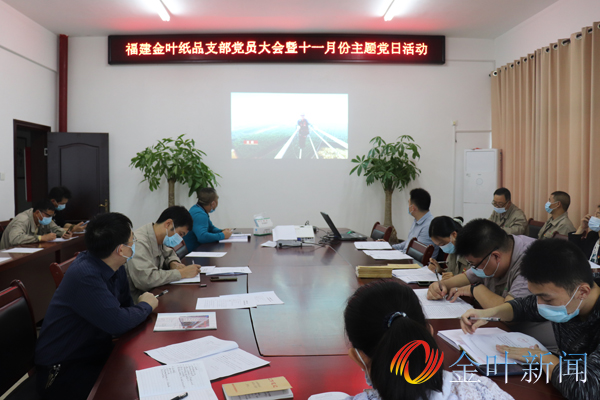 會議中海發集團副總經理、廠黨總支書記、機關黨支部書記賴永旺同志組織學習黨的二十大精神以及省委、市委、區委貫徹意見。廠黨總支委員、金葉紙品黨支部書記陳炳良同志組織學習習近平總書記在黨的二十屆一中全會上的重要講話精神。